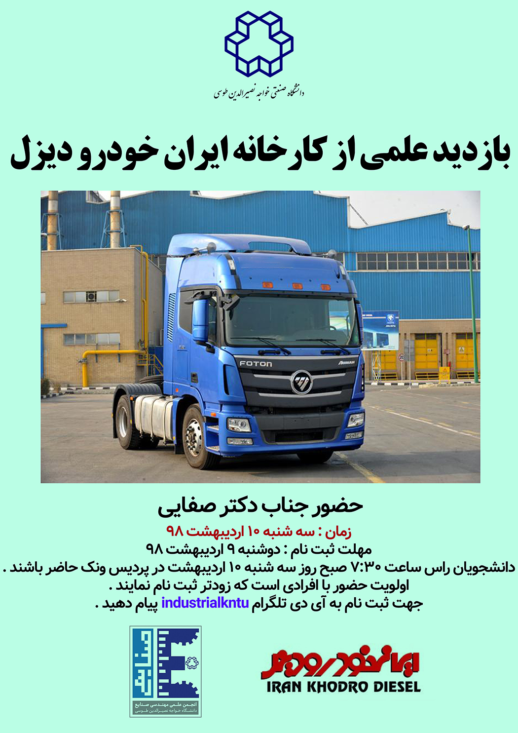 اطلاعيه بازديد از كارخانه ايران خودرو ديزل - دانشکده مهندسی صنایع