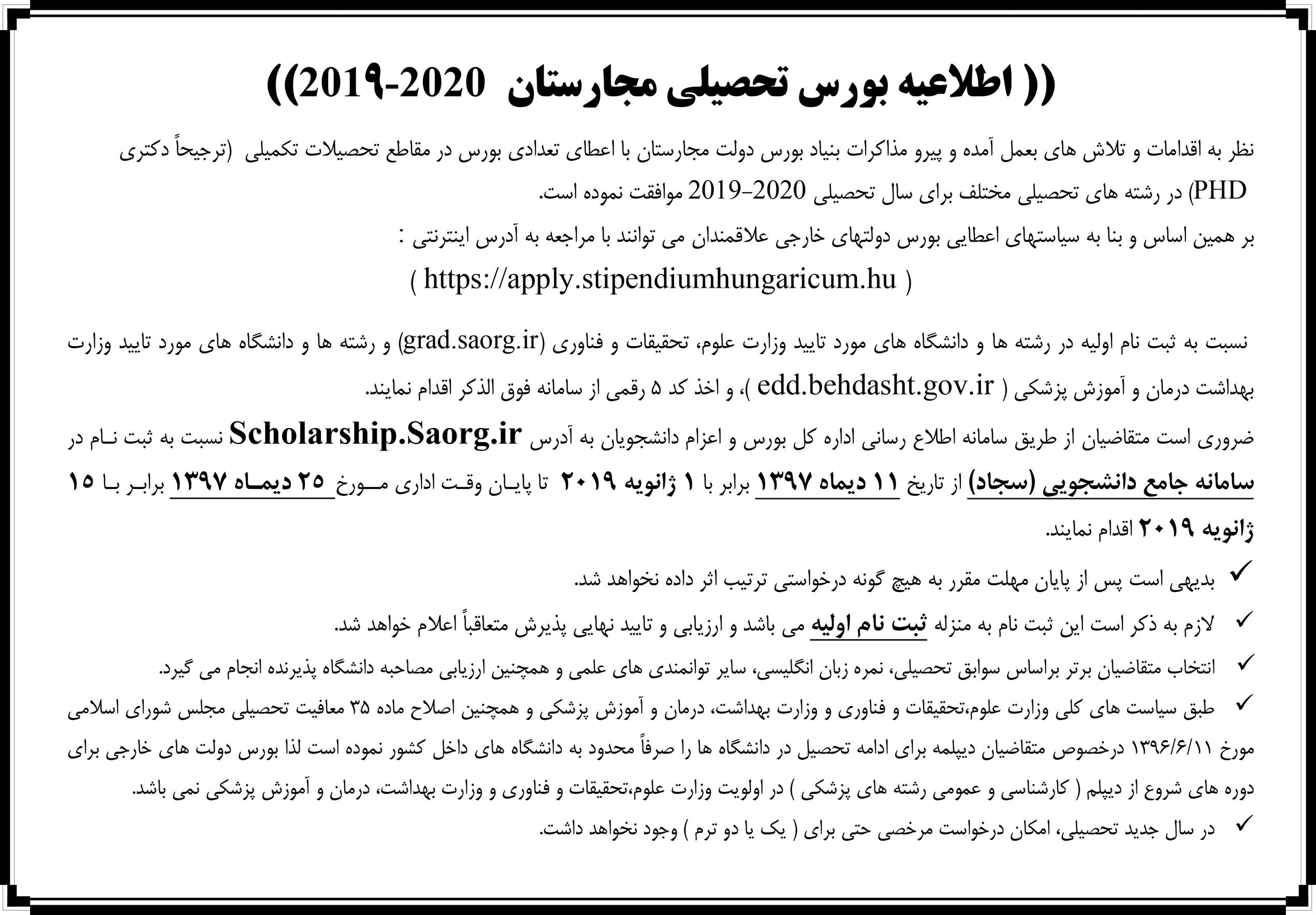 اطلاعيه بورس تحصيلي مجارستان -2020 9201