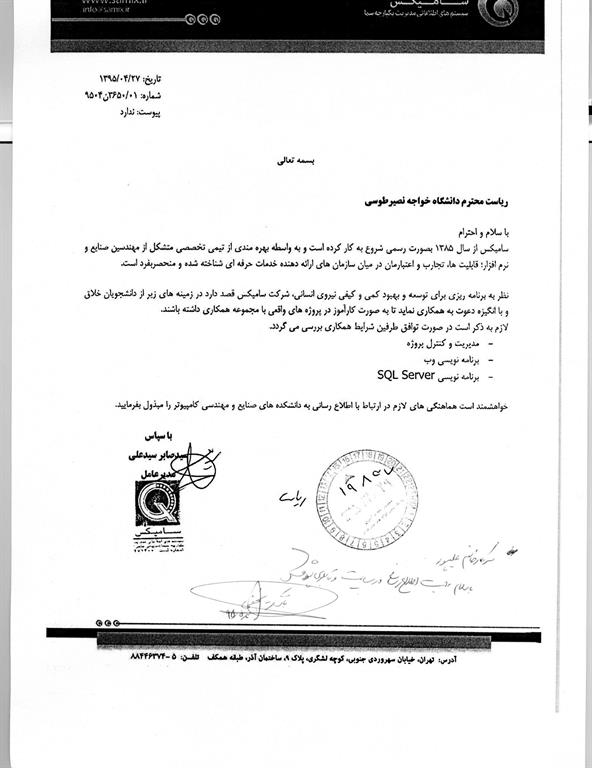 اطلاعيه دعوت به همكاري شركت ساميكس - دانشکده مهندسی صنایع