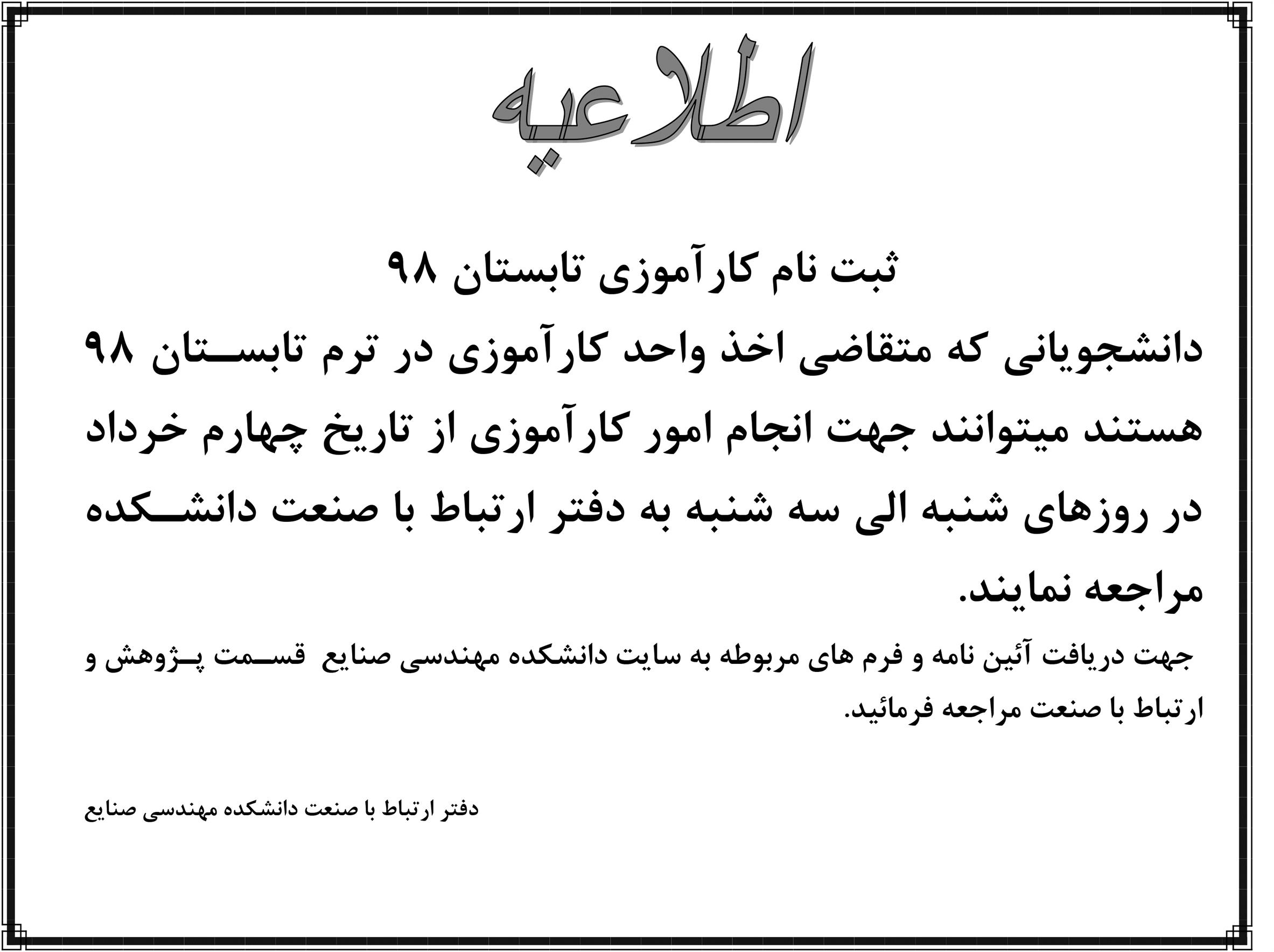 اطلاعيه كارآموزي 98 - دانشکده مهندسی صنایع