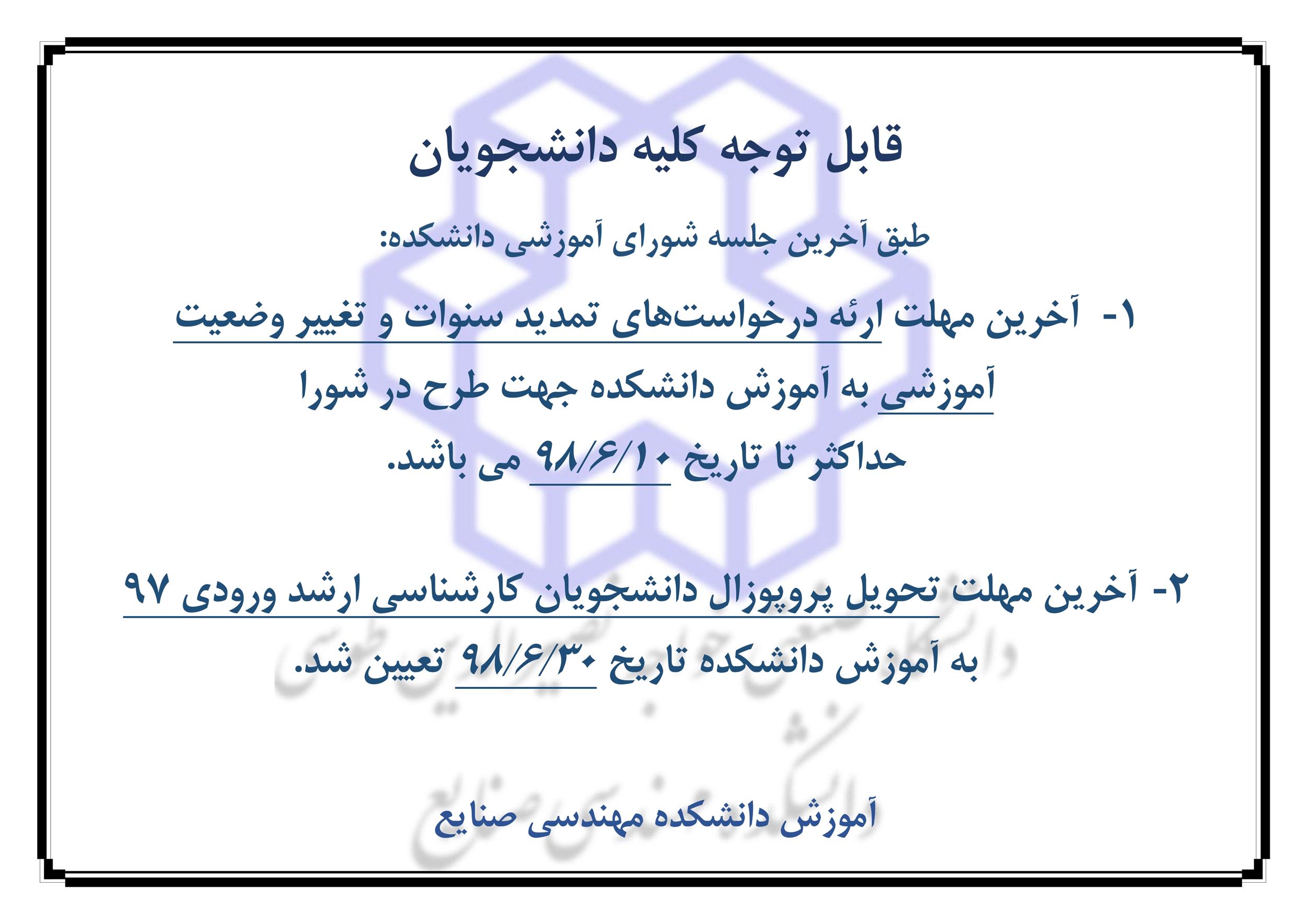 اطلاعيه مهم آموزشي - دانشکده مهندسی صنایع