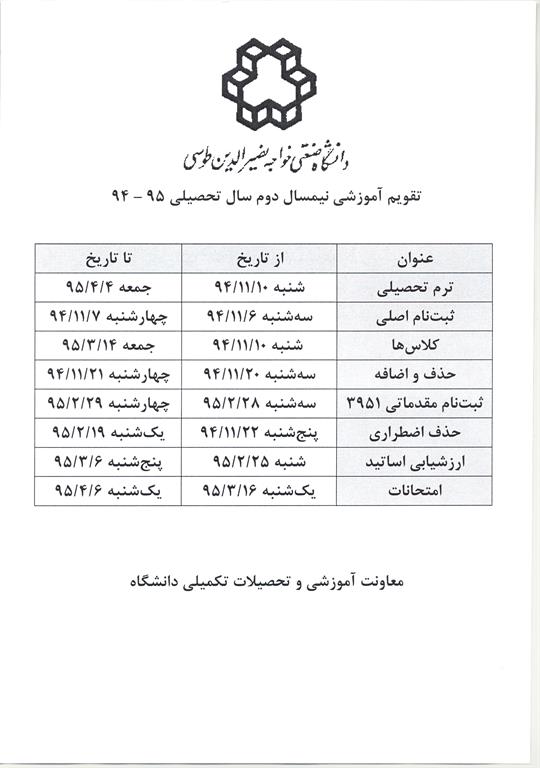 تقوم آموزشی نیمسال دوم سال تحصیلی 95-94