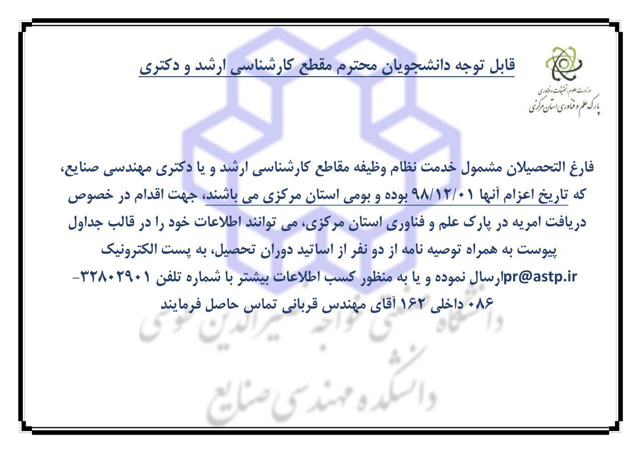 جذب نيروي امريه سربازي در پارك علم و فناوري استان مركزي - دانشکده مهندسی صنایع
