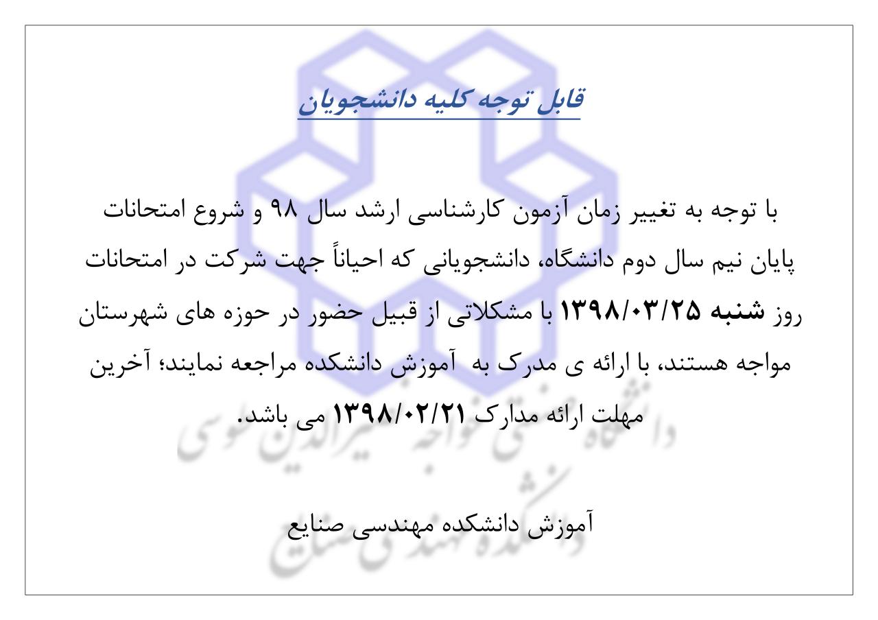 قابل توجه كليه دانشجويان كارشناسي ارشد سال 98 - دانشکده مهندسی صنایع