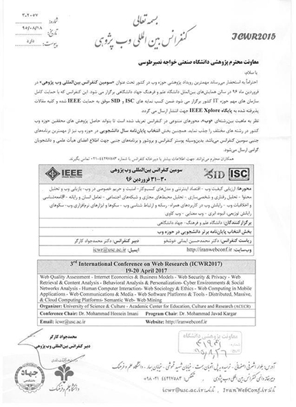 كنفرانس بين المللي وب پژوهشي - دانشکده مهندسی صنایع