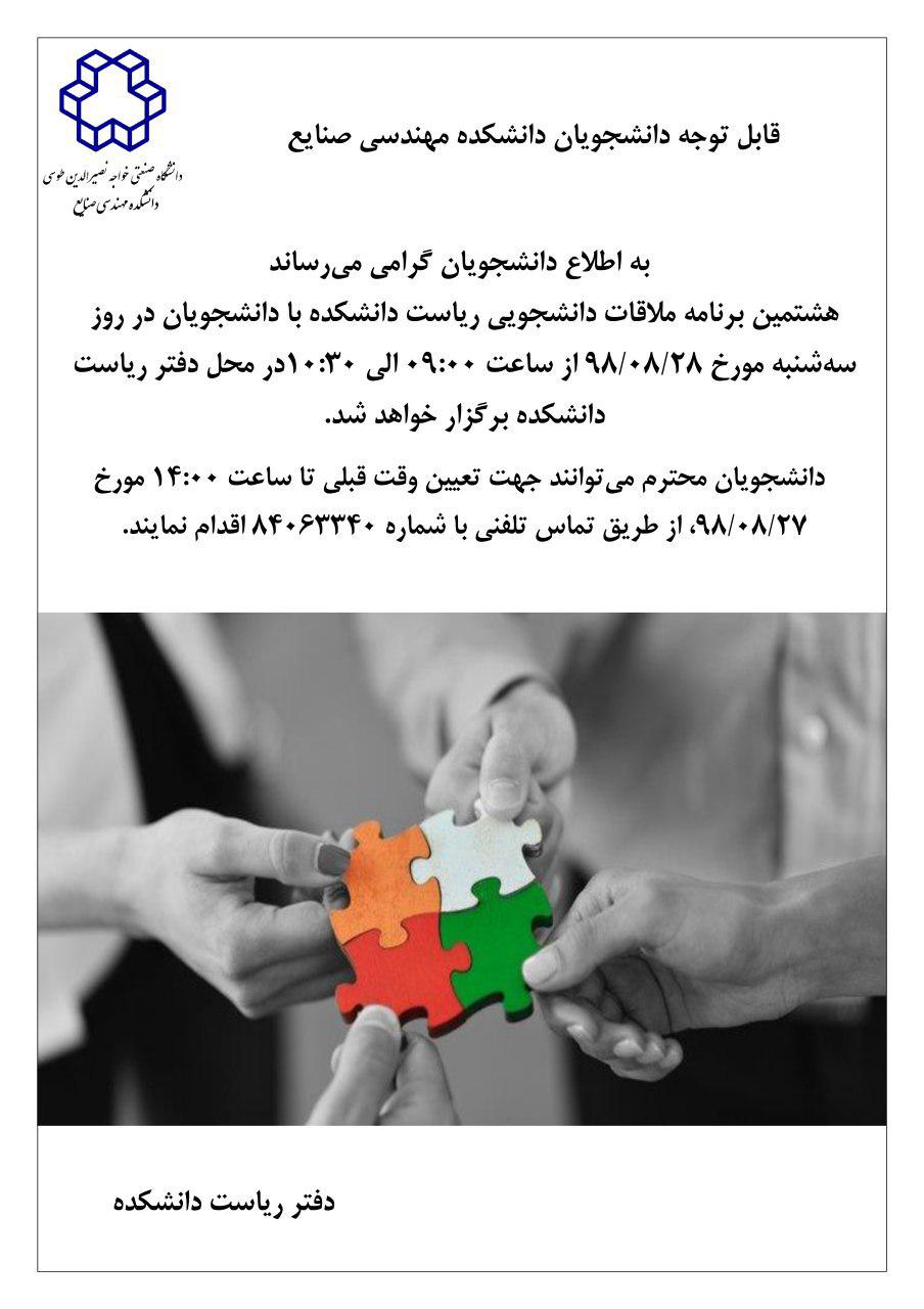 هشتمين برنامه ملاقات دانشجويي رياست دانشكده با دانشجويان گرامي - دانشکده مهندسی صنایع