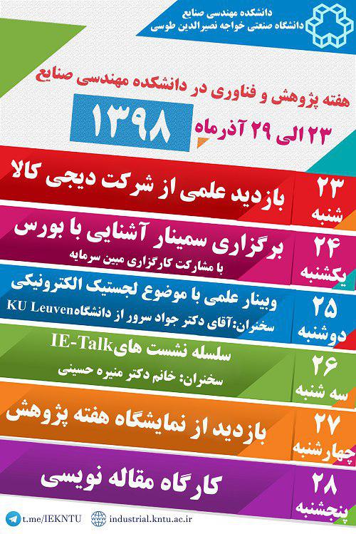 هفته پژوهش و فناوري در دانشكده مهندسي صنايع