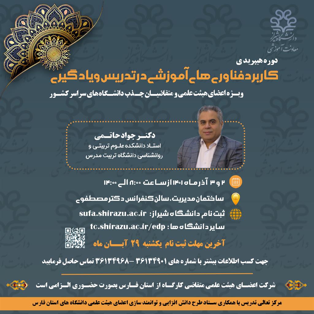 اطلاع رسانی کشوری کارگاه "کاربرد فناوری های آموزشی در تدریس و یادگیری"-آذر ماه 1401 - دانشکده مهندسی صنایع