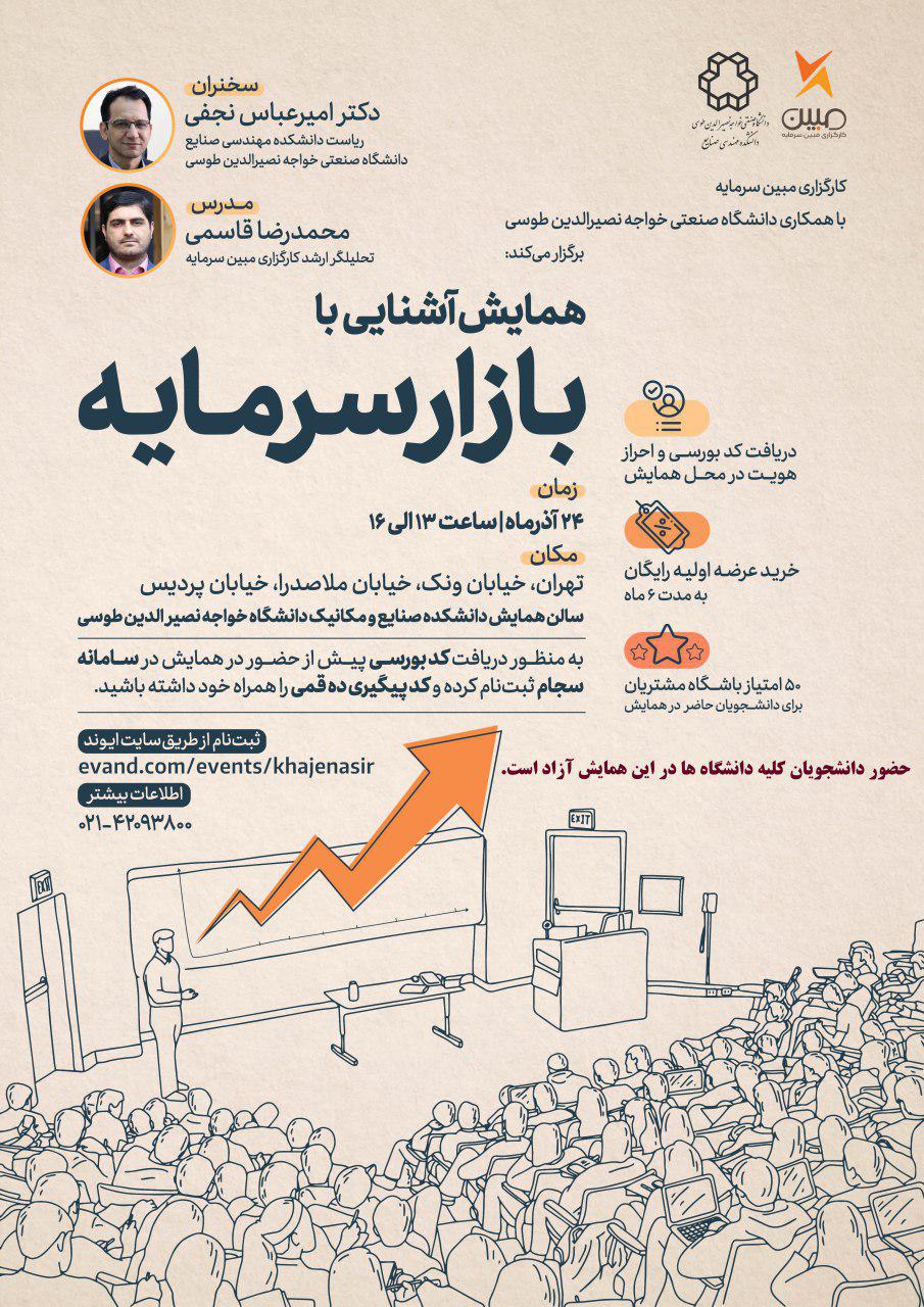 دانشكده مهندسي صنايع دانشگاه صنعتي خواجه نصيرالدين طوسي با همكاري كارگزاري مبين سرمايه برگزار ميكند