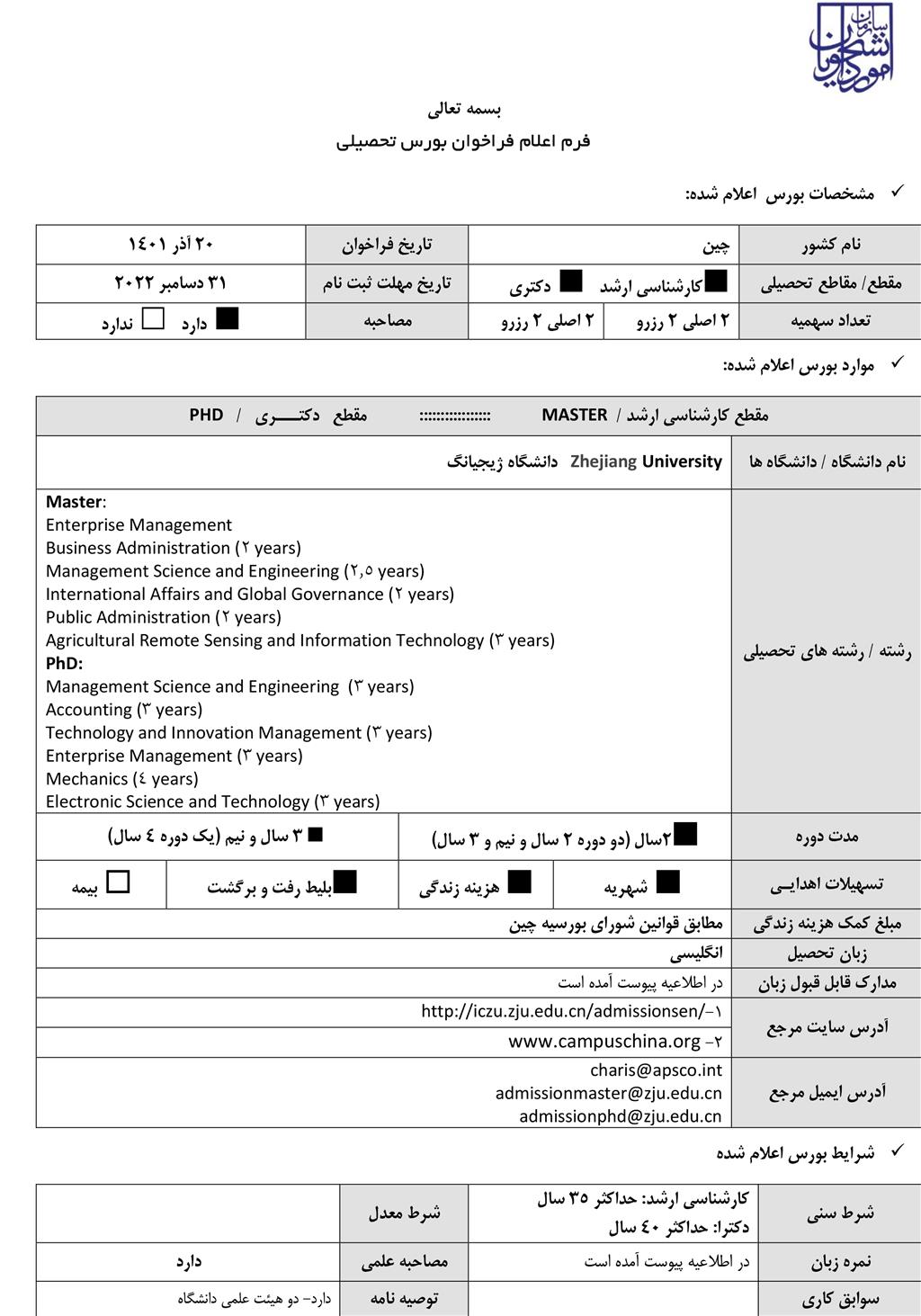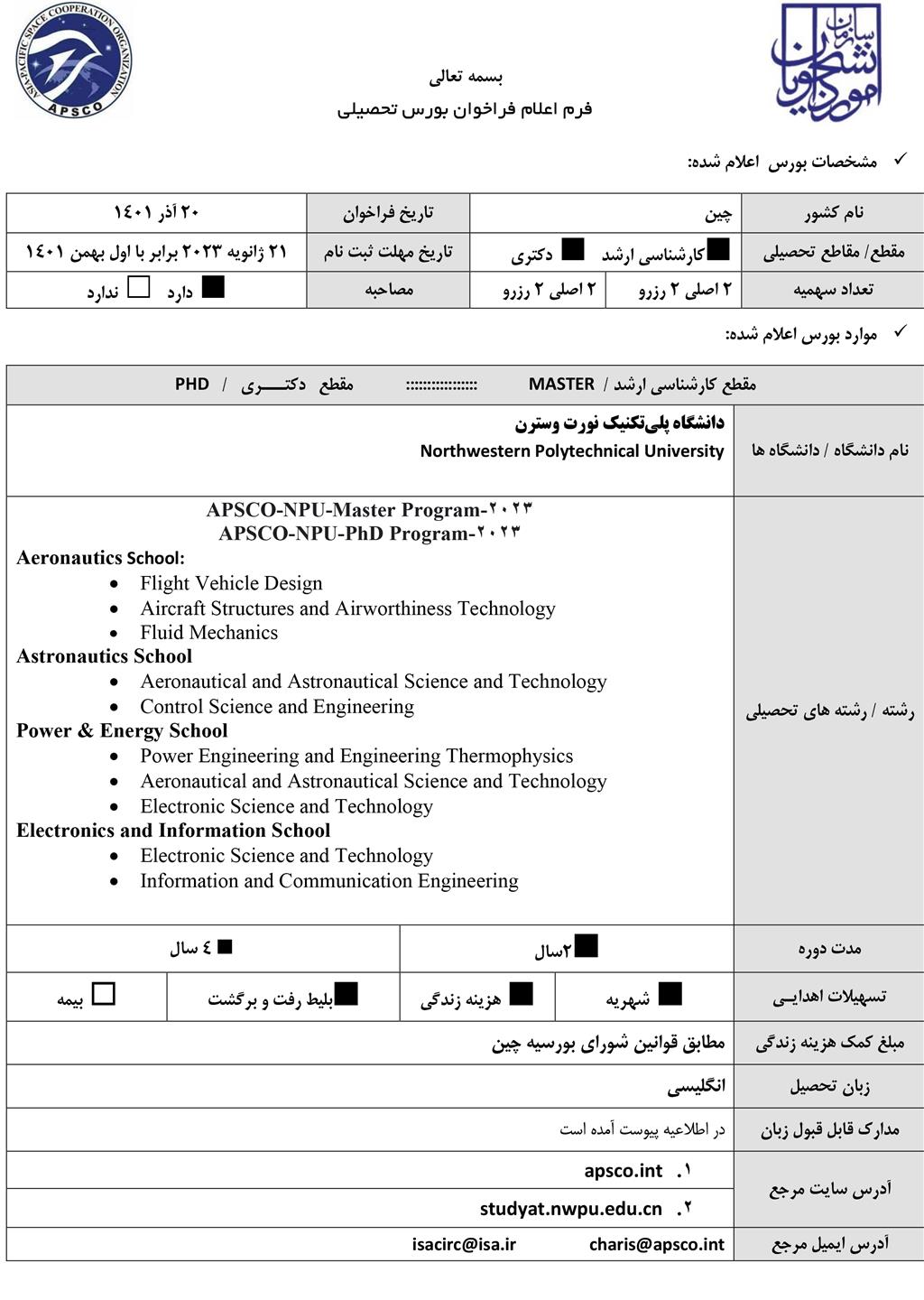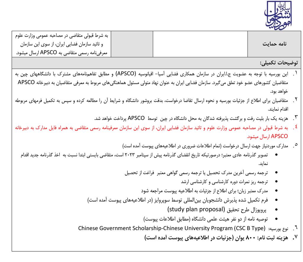 اعلام فراخوان بورس تحصیلی چین - اپسکو
